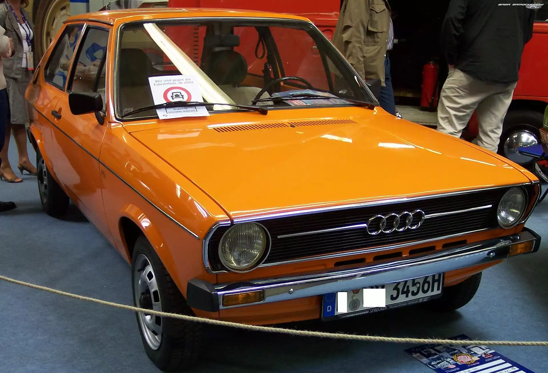 Reklama, Pomarańczowe, Audi 50 Hatchback, Audi 50 Audi 50 Prezentacja, Audi 50, Wystawa Drzwi, Audi 50 Wystawa, Audi 50, Salon Audi 50, Chrom, Przód, Zderzak