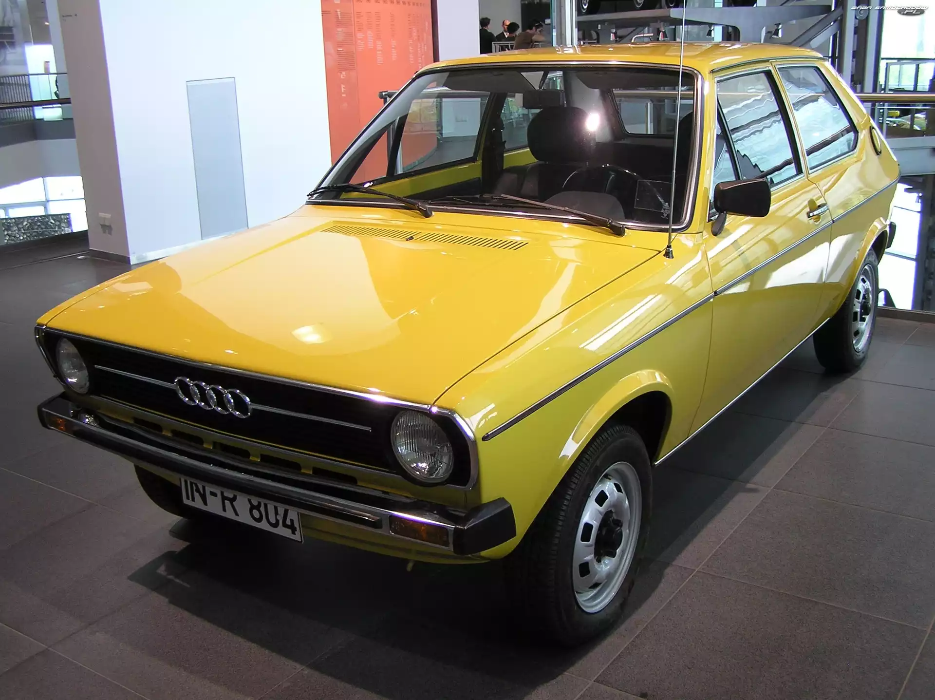 Reklama, Pomarańczowe, Audi 50 Hatchback, Audi 50 Audi 50 Prezentacja, Audi 50, Wystawa Drzwi, Audi 50 Wystawa, Audi 50, Salon Audi 50, Chrom, Przód, Zderzak